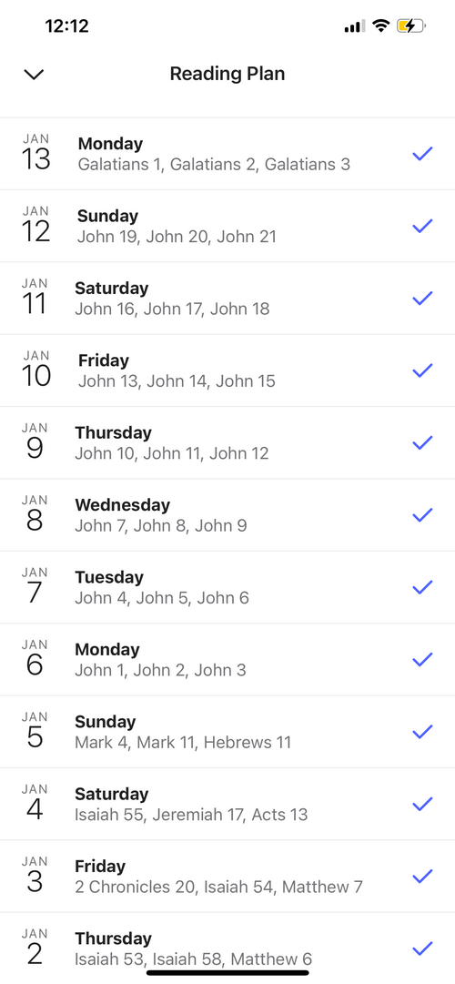 The reading is supposed to be completed within the 21 days, so you have until midnight tonight, the 22nd, to complete your reading, fill out the form, and email us screenshots of your completed Bible Reading Plan.