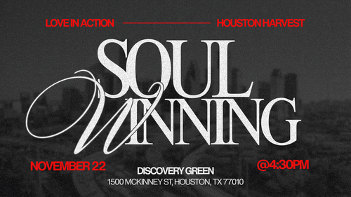Join us on November 22nd at Discovery Green! We are going out to bring in the harvest! Please sign up online! The van will be available for those who want to ride together. We will meet at the church at 3:15 and leave by 3:30 to go and compel the lost to come in!